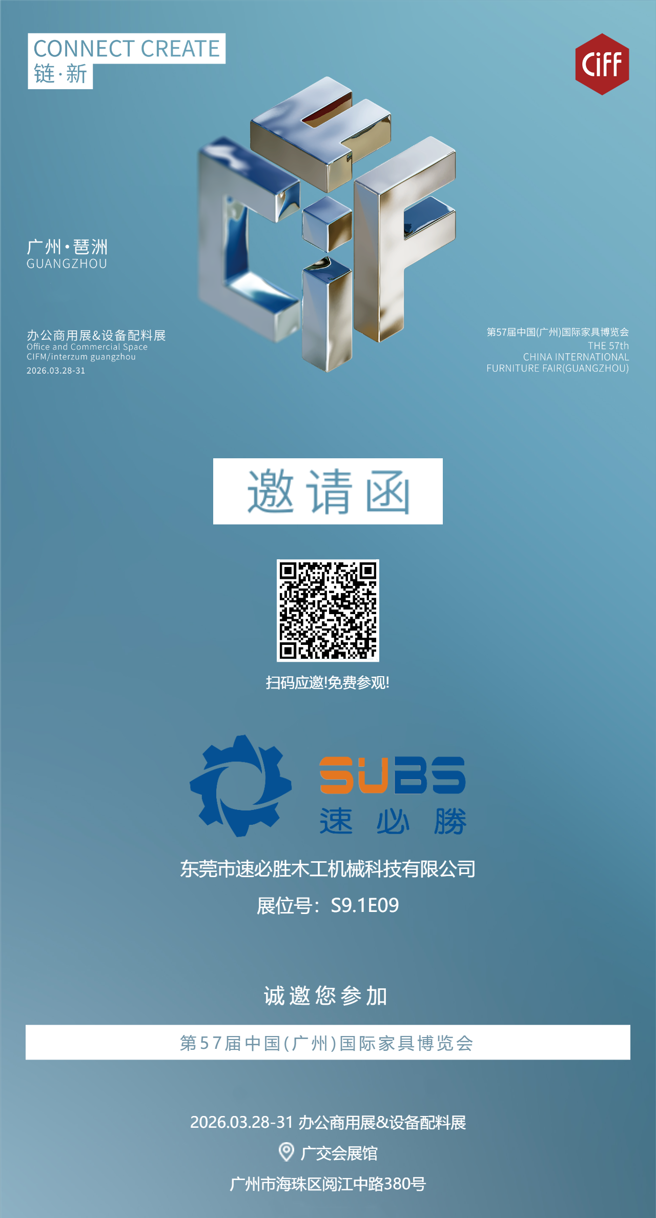 扫码应邀免费观展,速必胜机械与您相约,3月28日广州展会!